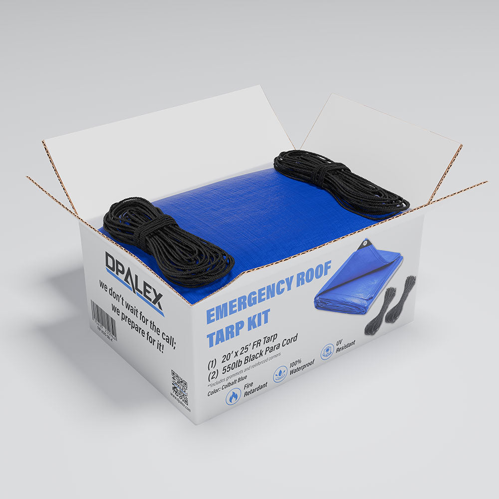 DPALEX advantage: Our kits include two (2) 100-foot lengths of 550 lb. test parachute cord, packaged with the tarp to eliminate delays in the field. Field teams don’t have time to source tie-downs on-site. DPALEX kits ship mission-ready, with rugged, military-grade cord for secure anchoring in storm, wind, or rooftop conditions.